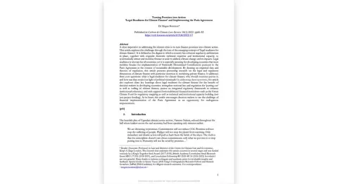 Turning Promises into Action: ‘Legal Readiness for Climate Finance’ and Implementing the Paris Agreement