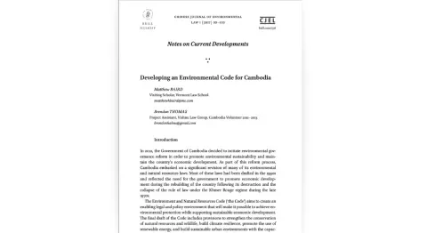 Chinese Journal of Environmental Law 1 (2017) 99–103 - Notes on Current Developments: Developing an Environmental Code for Cambodia