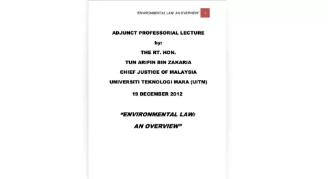 Justice Tun Arifin Bin Zakaria of the Universiti Teknologi Mara (UiTM) provides an overview of Environmental Law.